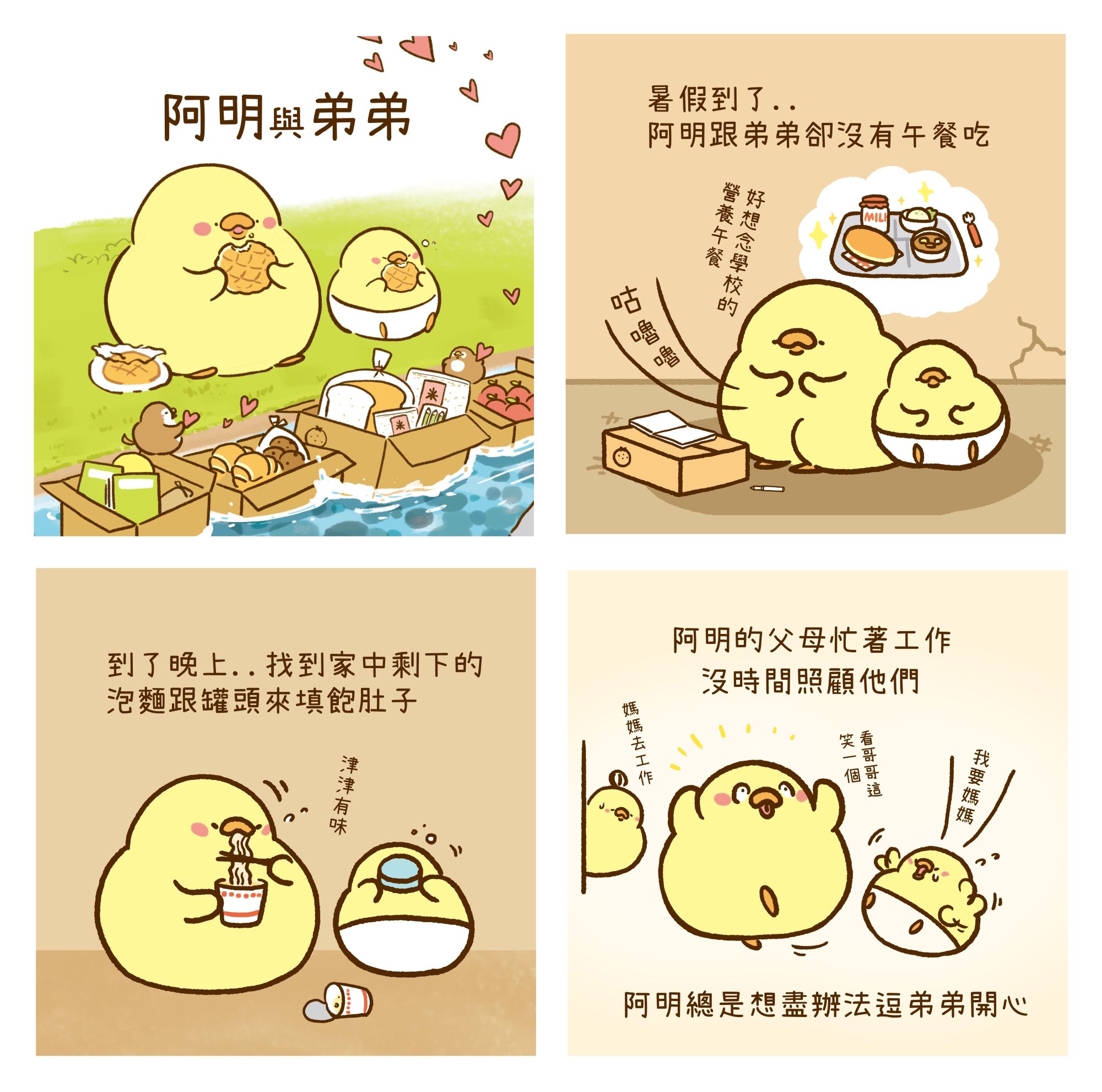 這世界有我們所不知道的一面,一起伸出援手幫助弱勢兒童,讓阿明跟弟弟可以得到完善的照顧 並度過一個快樂且充實的暑假,長假營養資助計畫與吃貨雞仔一起,讓弱勢孩子長假營養學習不中斷!
